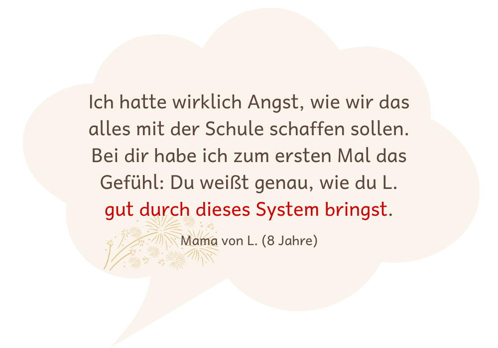 Doch oft fehlt nur ein Funke, um Entwicklung wieder in Gang zu setzen. Meine Aufgabe ist es, genau diesen Funken zu finden, damit dein Kind über sich hinauswachsen kann.